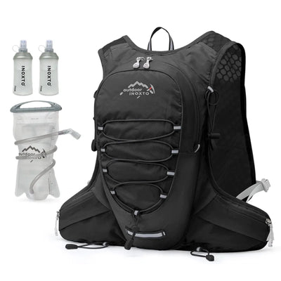 O Colete Inoxto HydraPack 10L, acompanhado do Kit de Garrafas, que inclui uma Bolsa de Hidratação de 1,5L com mangueira e duas Soft Flasks de 250ml, foi desenvolvido para atletas de trail running, ultramaratonas e trekking de longa duração que precisam de hidratação contínua e espaço extra para equipamentos. Com capacidade de 10 litros, o colete permite transportar líquidos, suplementos, roupas leves e outros itens essenciais sem comprometer a mobilidade ou o conforto durante a atividade.